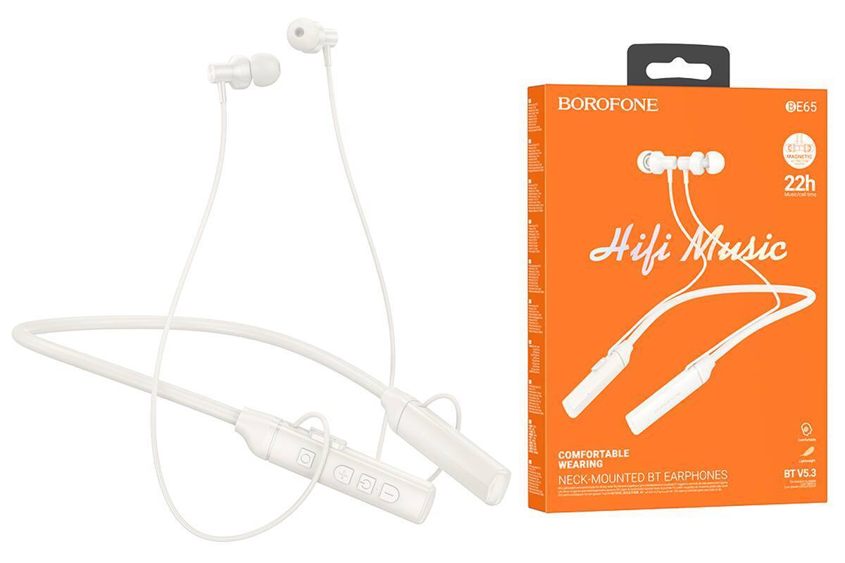 Наушники вакуумные беспроводные BOROFONE BE65 Gratified neck-mounted BT headset Bluetooth (топленое молоко)