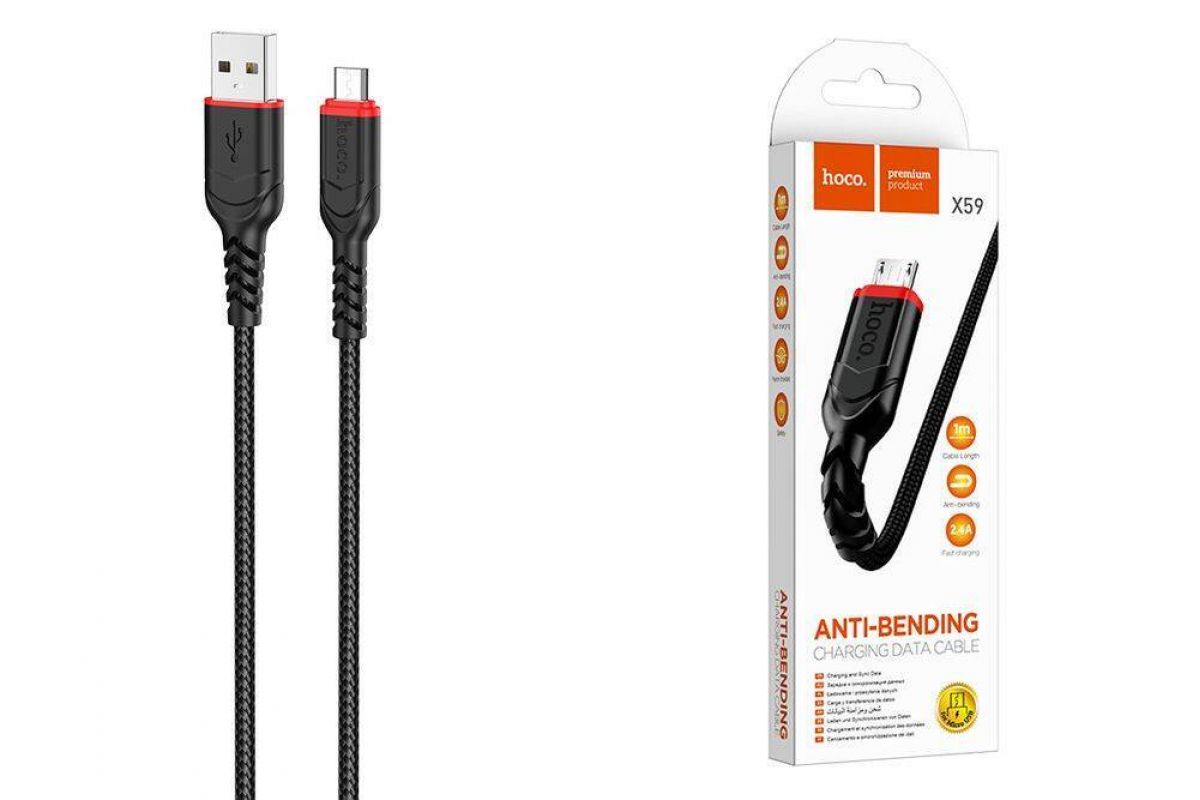 Кабель USB - MicroUSB HOCO X59 2,4A (черный) 2м (оплетка)