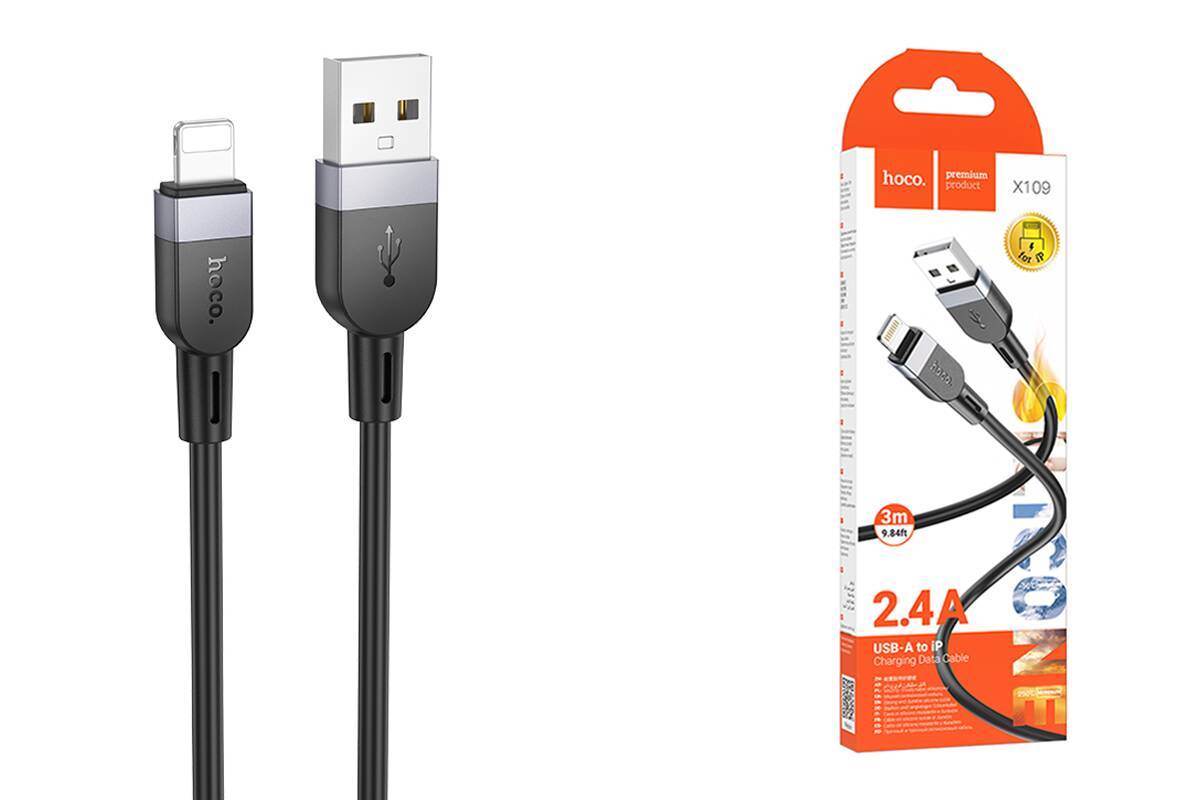 Кабель USB - Lightning HOCO X109, 2,4A (черный) 3м силиконовый