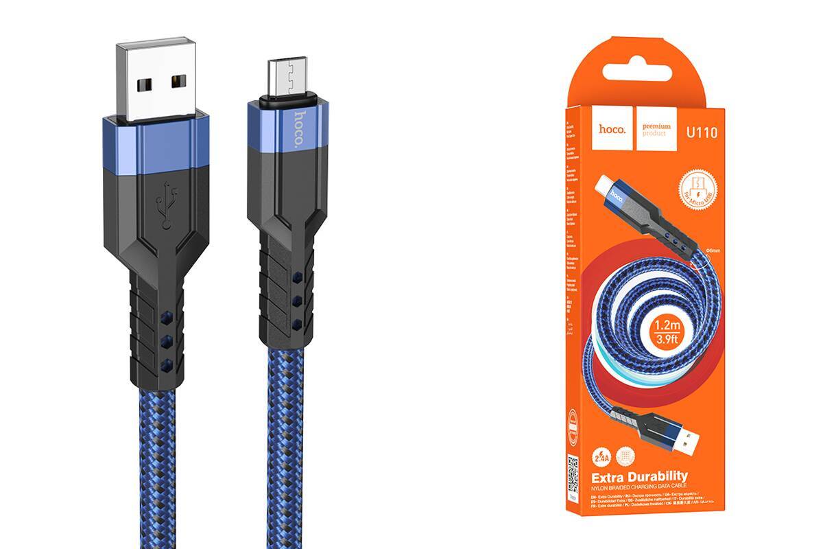 Кабель USB - MicroUSB HOCO U110 2,4A (синий) 1,2м