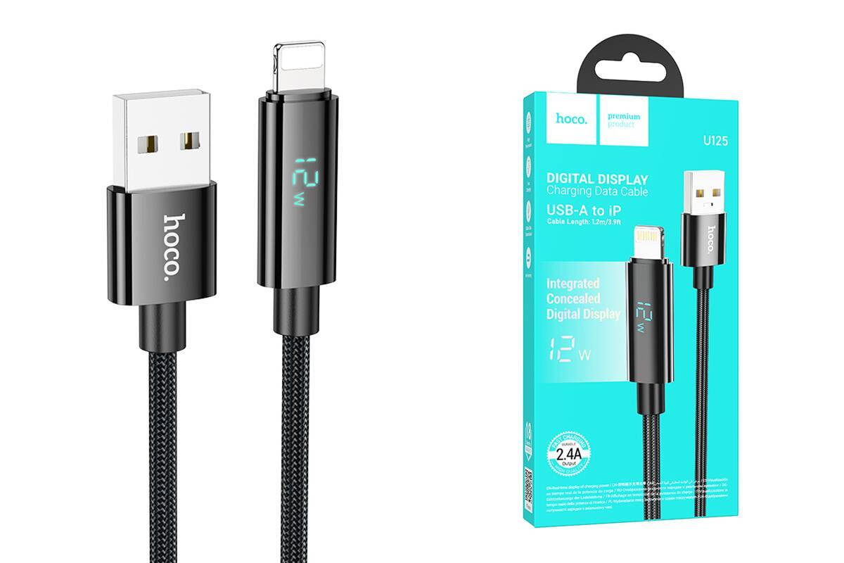 Кабель USB - Lightning HOCO U125 Benefit charging data cable with display (черный) 1,2м
