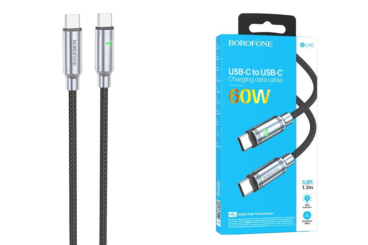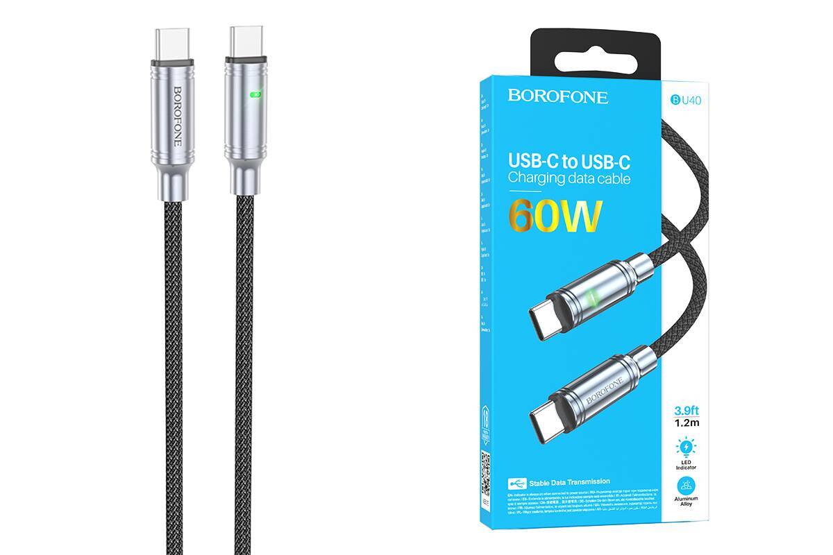 Кабель USB Type-C - USB Type-C BOROFONE BU40, PD60W (черный) 1м