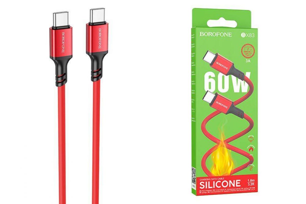 Кабель USB Type-C - USB Type-C BOROFONE BX83, PD60W (красный) 1м силиконовый