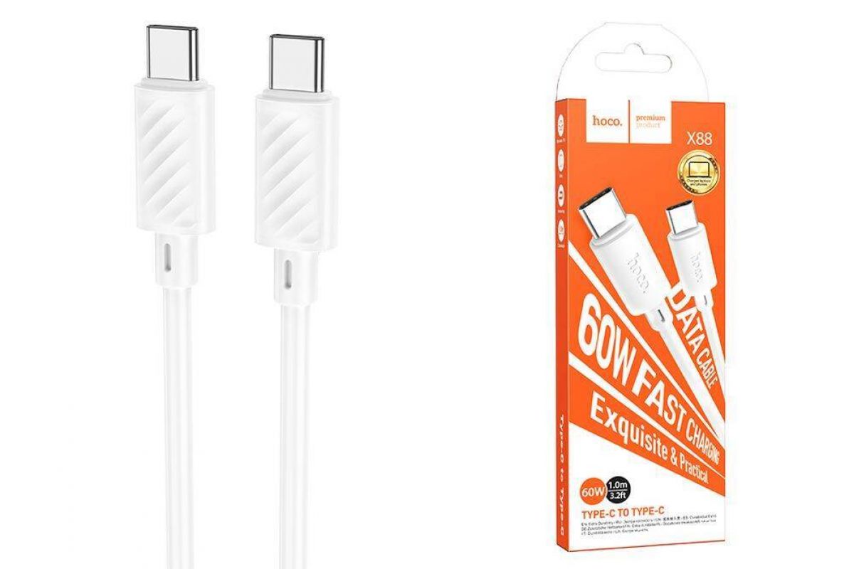 Кабель USB Type-C - USB Type-C HOCO X88 PD60W (белый) 1м Кабель USB Type-C - USB Type-C HOCO X88 PD60W (белый) 1м