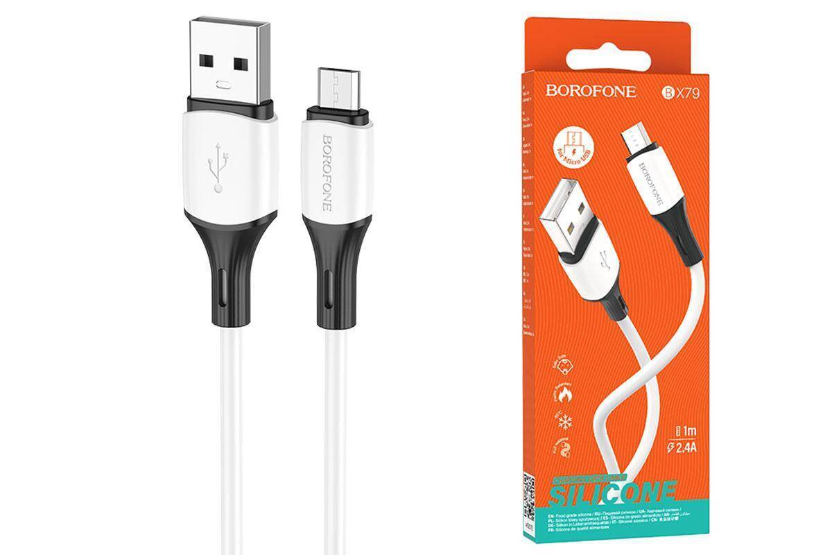 Кабель USB - MicroUSB BOROFONE BX79 силиконовый 2,4A (белый) 1м