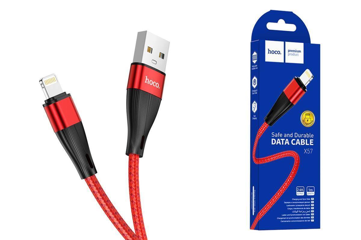 Кабель USB - Lightning HOCO X57, 2,4A (красный) 1м (в оплетке)