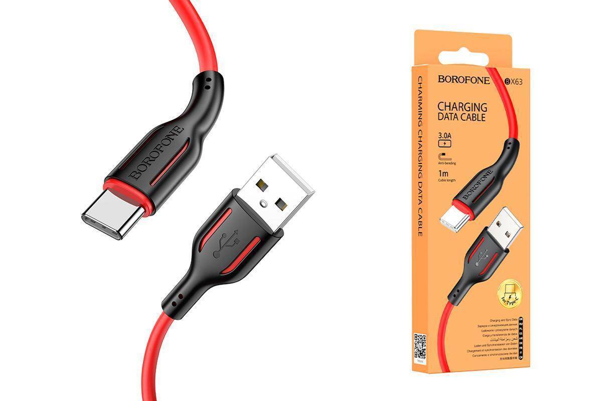 Кабель USB - USB Type-C BOROFONE BX63, 3A (красный) 1м