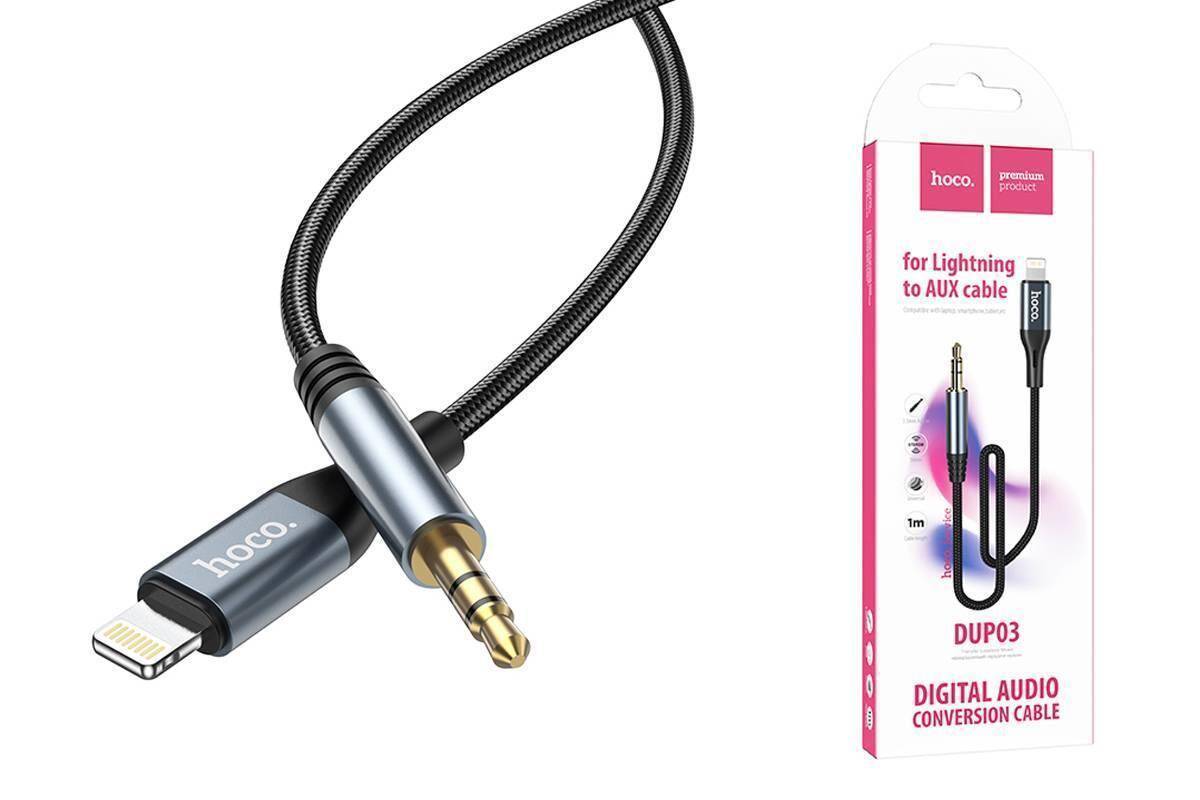 Кабель аудио HOCO DUP03 (штекер Lightning - вход AUX 3.5 mm) (серый) 1м