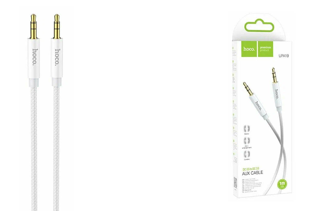 Кабель аудио AUX HOCO UPA22 AUX 3.5 1 метр силиконовый белый
