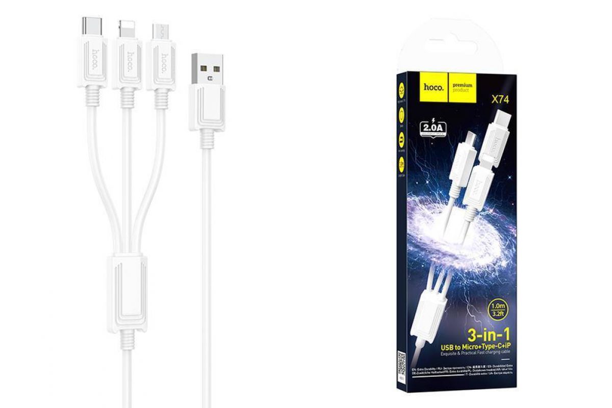 Кабель USB 3 в 1 HOCO X74 lightning/Micro/Type-C (белый) 1м