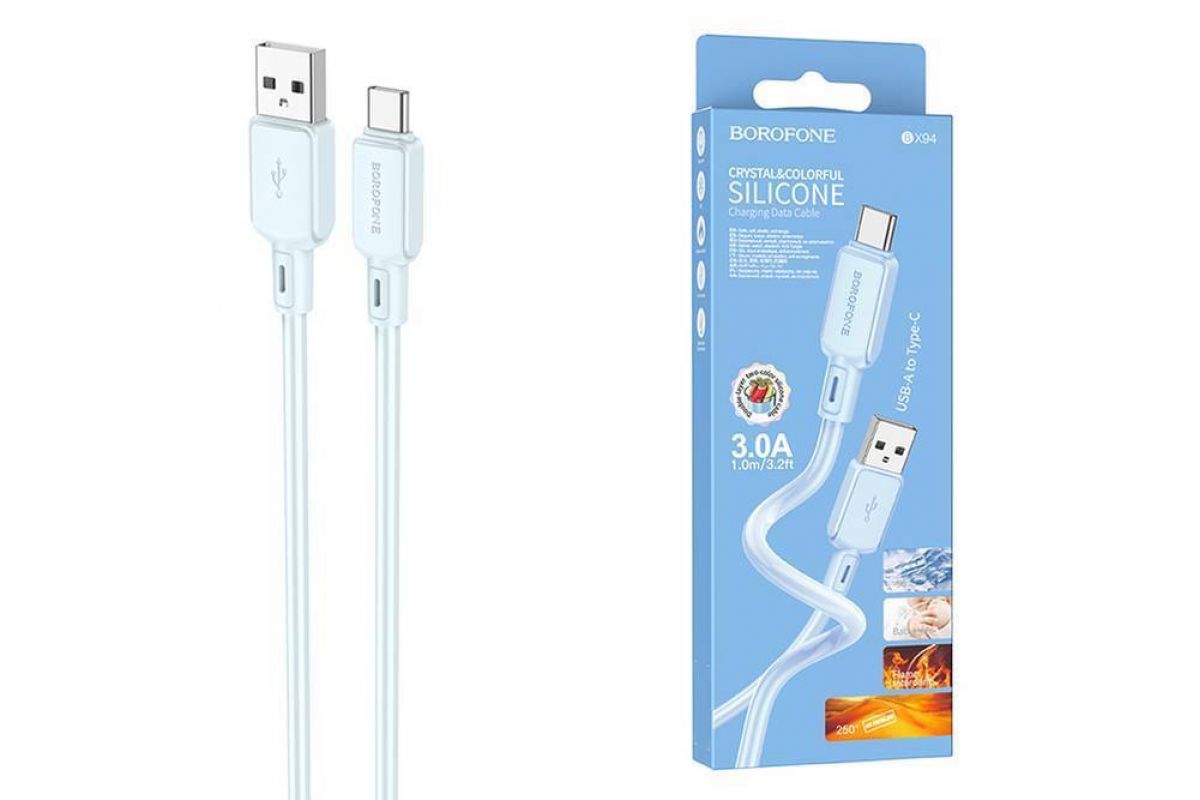 Кабель USB - USB Type-C BOROFONE BX94 3A (светло-голубой) 1м Кабель USB - USB Type-C BOROFONE BX94 3A (светло-голубой) 1м