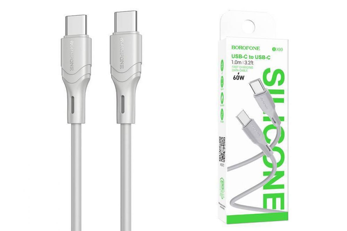 Кабель USB Type-C - USB Type-C BOROFONE BX99, PD60W (серый) 1м силиконовый
