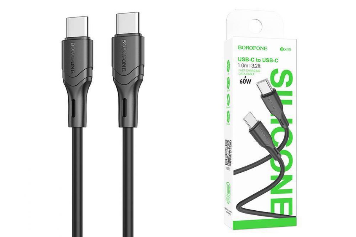 Кабель USB Type-C - USB Type-C BOROFONE BX99, PD60W (черный) 1м силиконовый