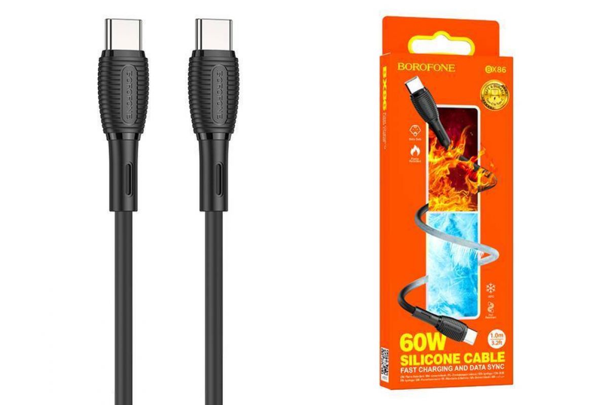 Кабель USB Type-C - USB Type-C BOROFONE BX86, PD60W (черный) 1м силиконовый