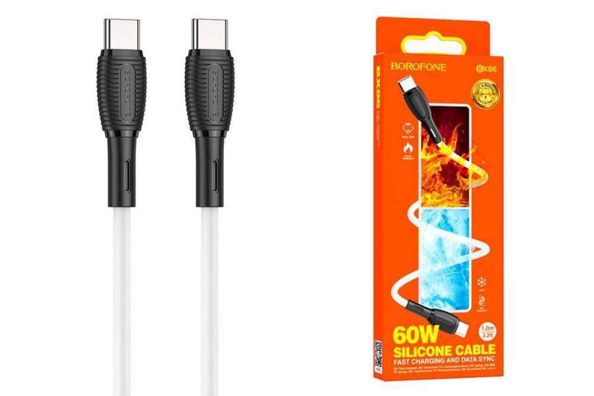 Кабель USB Type-C - USB Type-C BOROFONE BX86, PD60W (белый) 1м силиконовый