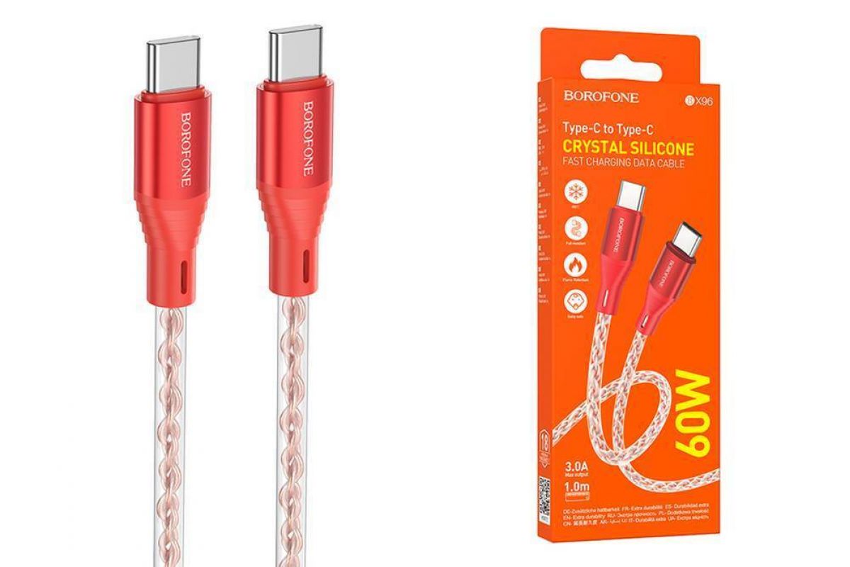 Кабель USB Type-C - USB Type-C BOROFONE BX96, PD60W (красный) 1м силиконовый