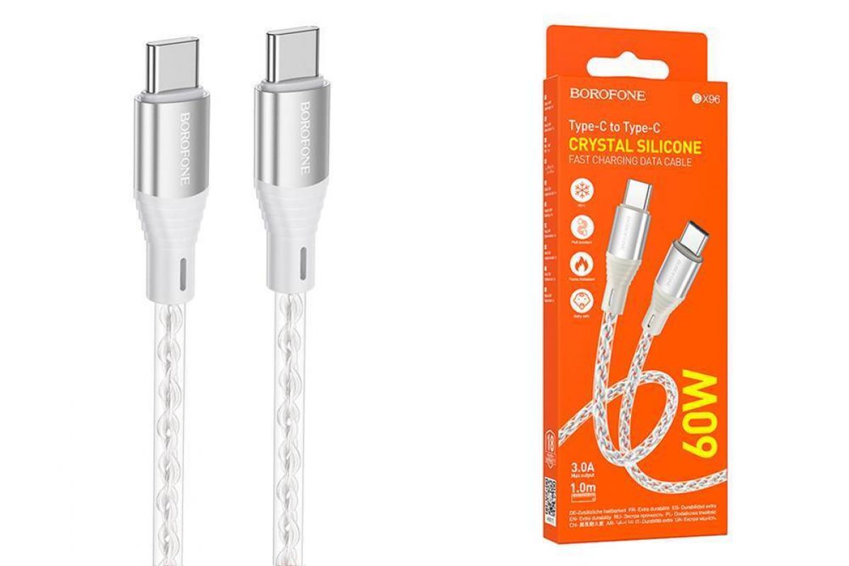 Кабель USB Type-C - USB Type-C BOROFONE BX96, PD60W (серый) 1м силиконовый