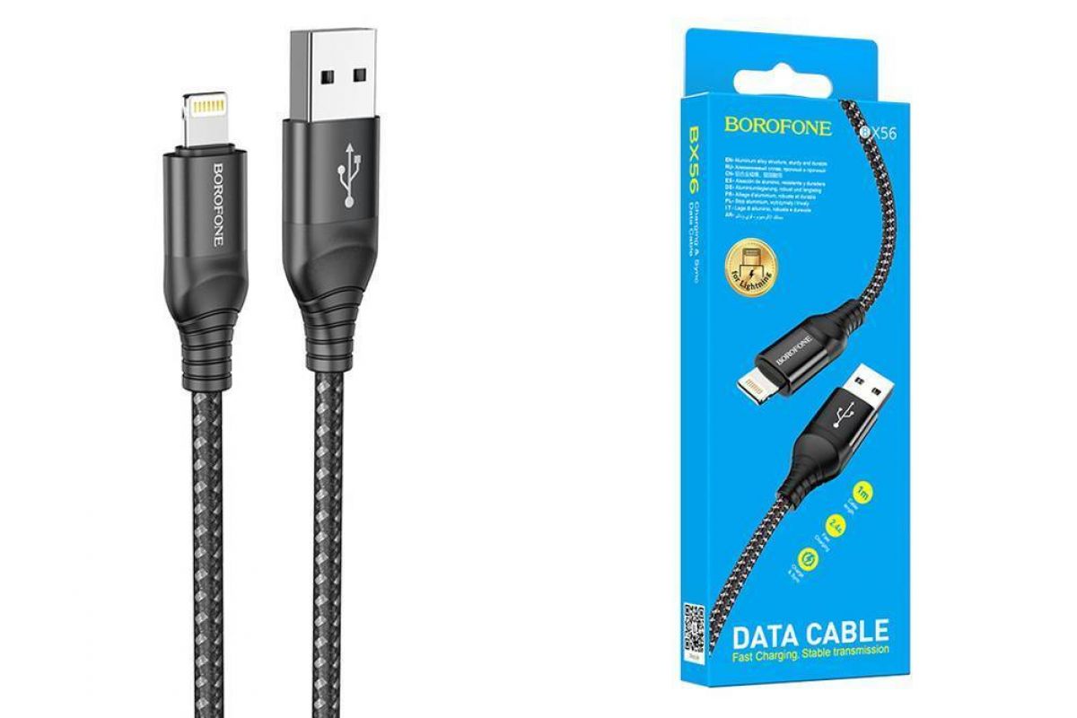 Кабель USB - Lightning BOROFONE BX56, 2,4A (черный) 1м (в оплетке)