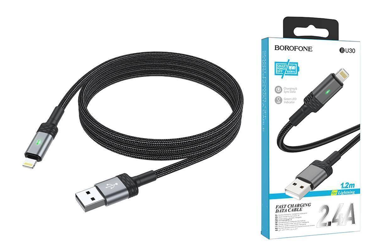 Кабель USB - Lightning BOROFONE BU30 (черный) 1,2м (с усиление сгиба)