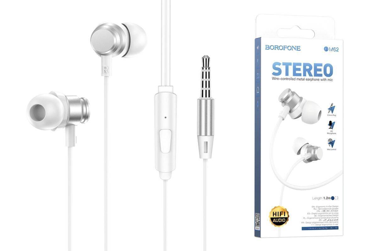 Наушники вакуумные проводные BOROFONE BM62 Prosperity (серебристый)