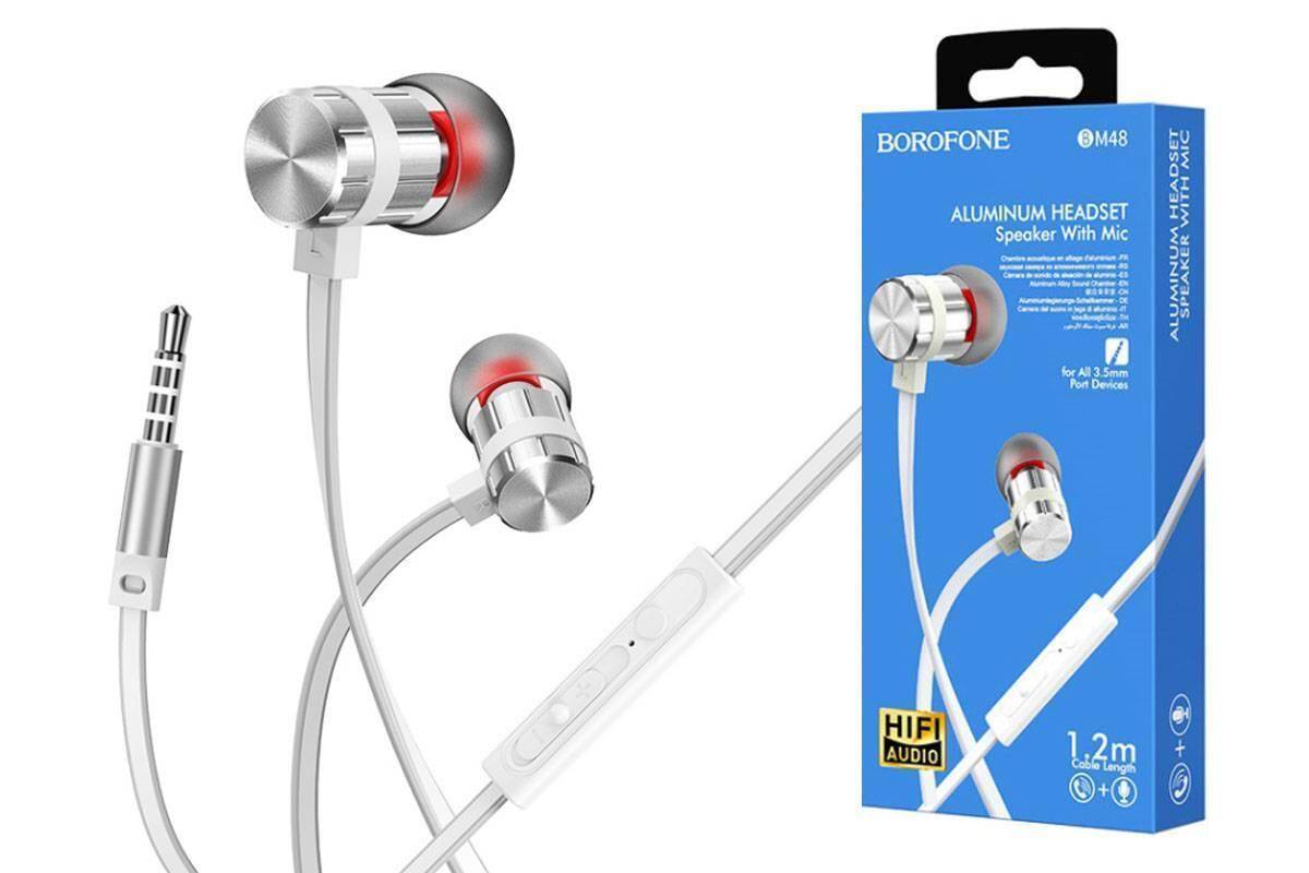 Наушники вакуумные проводные BOROFONE BM48 Acoustic universal earphones (серебристый)