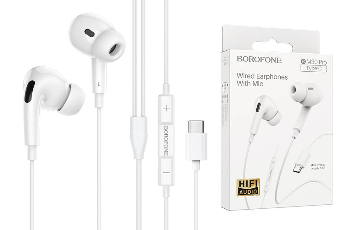 Наушники вакуумные проводные BOROFONE BM30 Max штекер Type-C (белый)