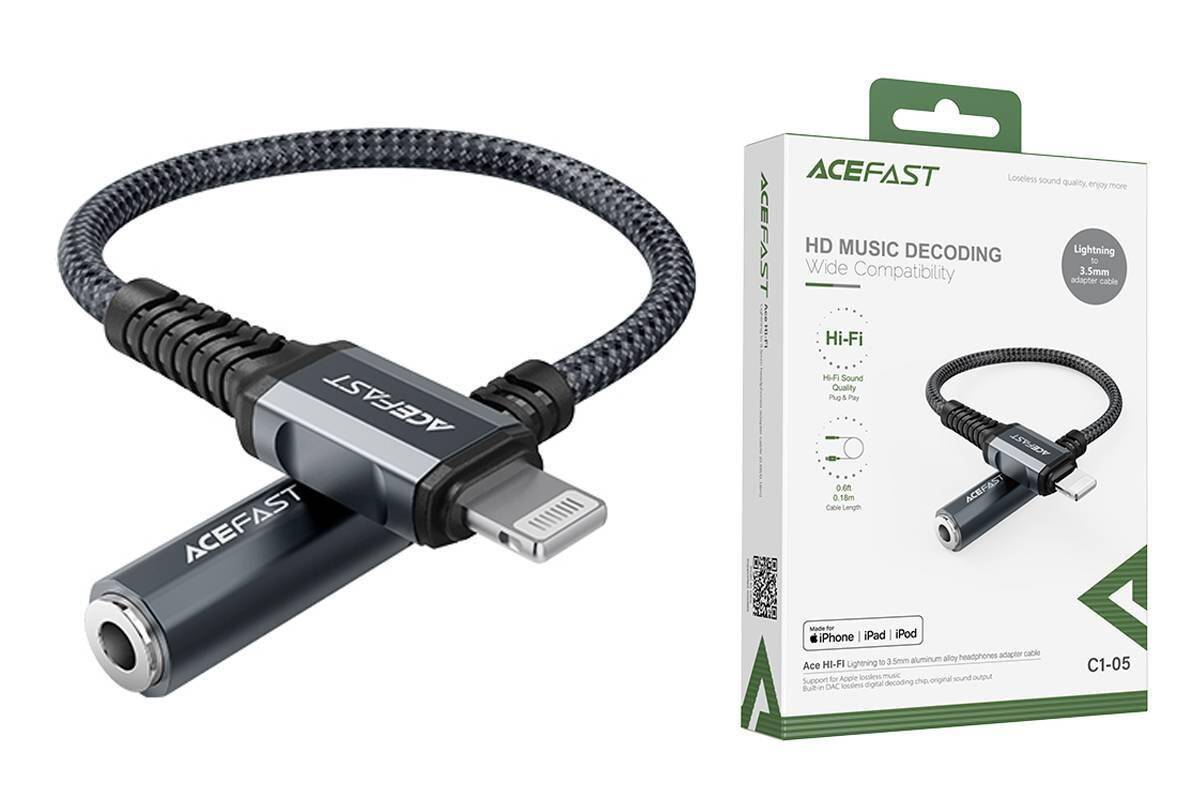 Адаптер для проводной гарнитуры iPhone c 3.5 мм на Lighting ACEFAST C1-05 (серый) 0.18 м (AUX (вход) - Lightning)