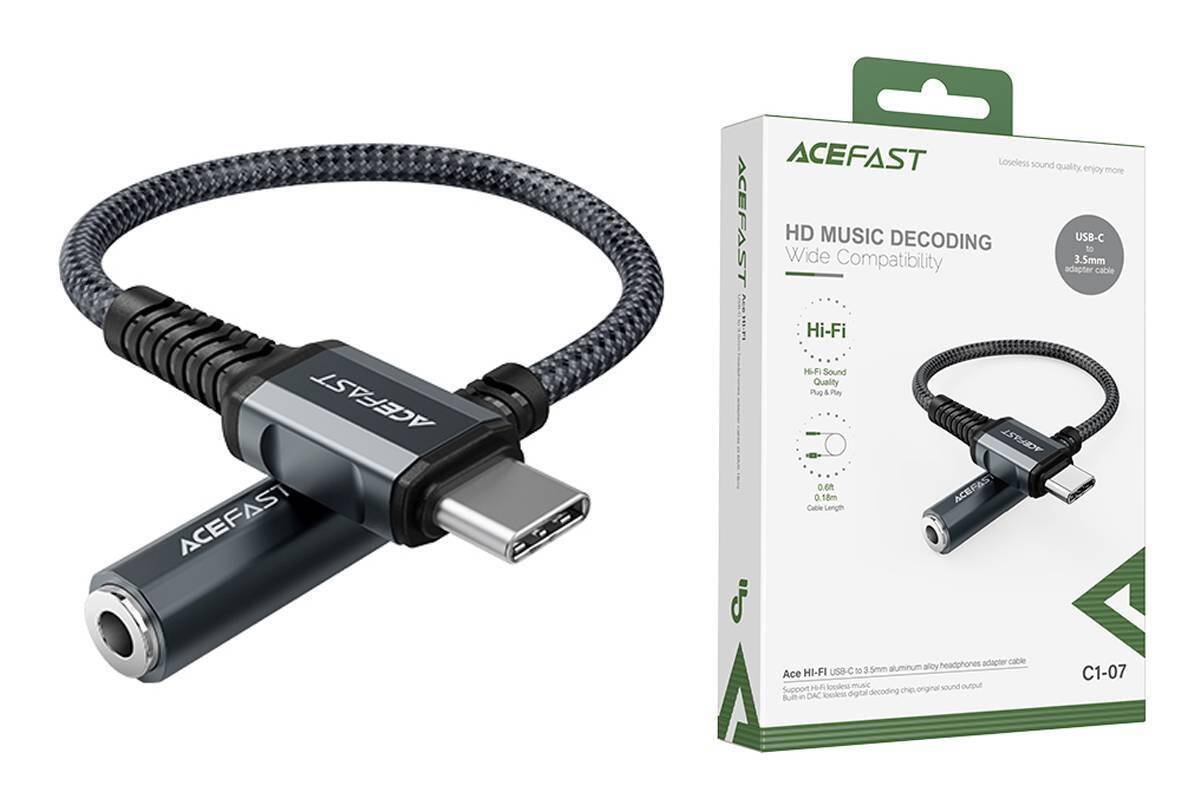 Адаптер для проводной гарнитуры c 3.5 мм на Type-C ACEFAST C1-07 (серый) 0.18 м (AUX (вход) - Type-C )