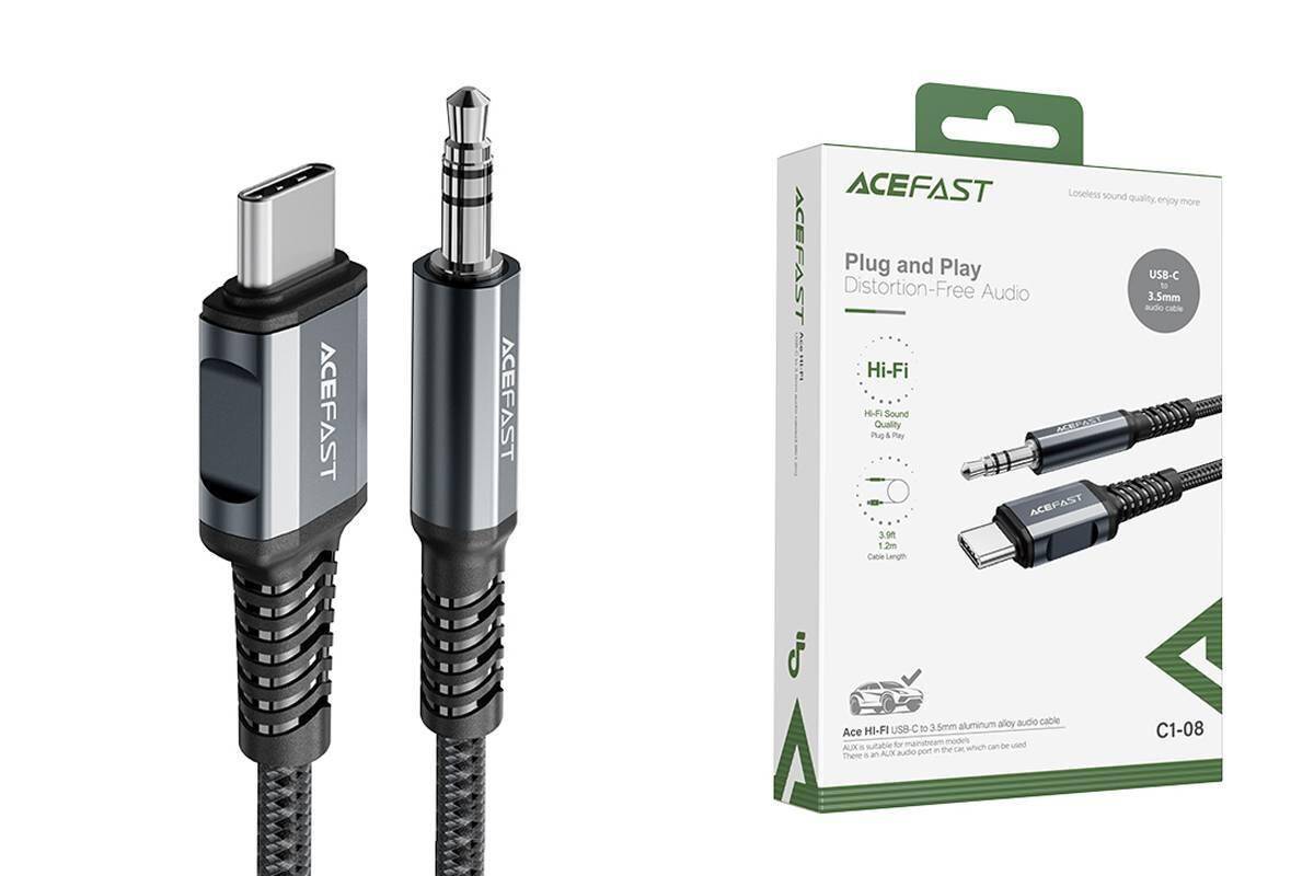 Переходник кабель ACEFAST C1-08 1м (Jack 3.5mm - Type-C) (серый)