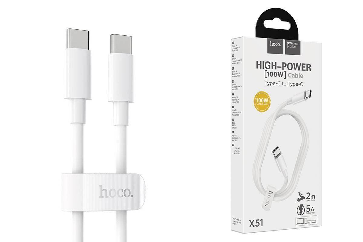 Кабель USB Type-C - USB Type-C HOCO X51, 5A/20V, PD100W (белый) 2м
