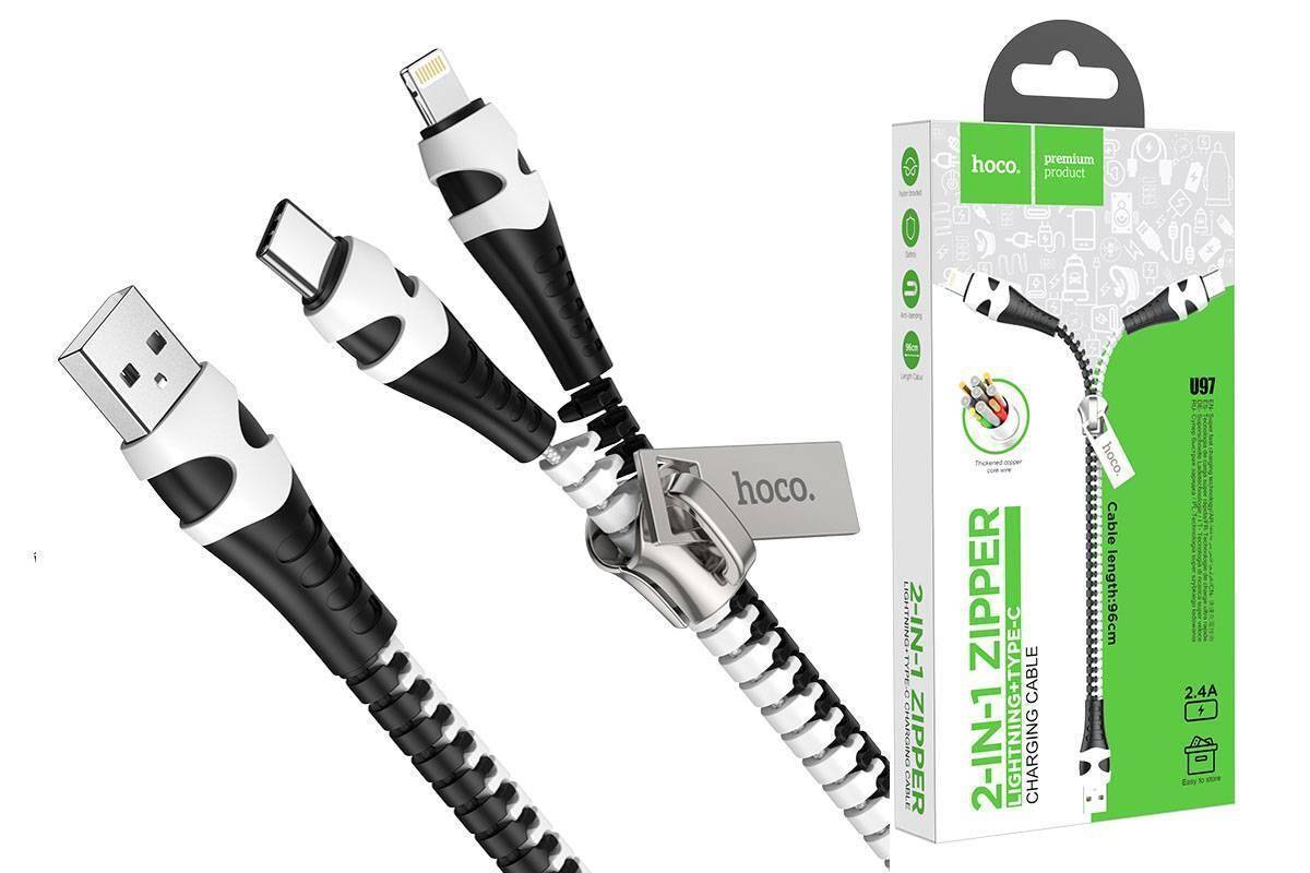 Кабель USB 2 в 1 HOCO U97 Zipper charging cable (Lightning+Type-C (черно-белый) 1м