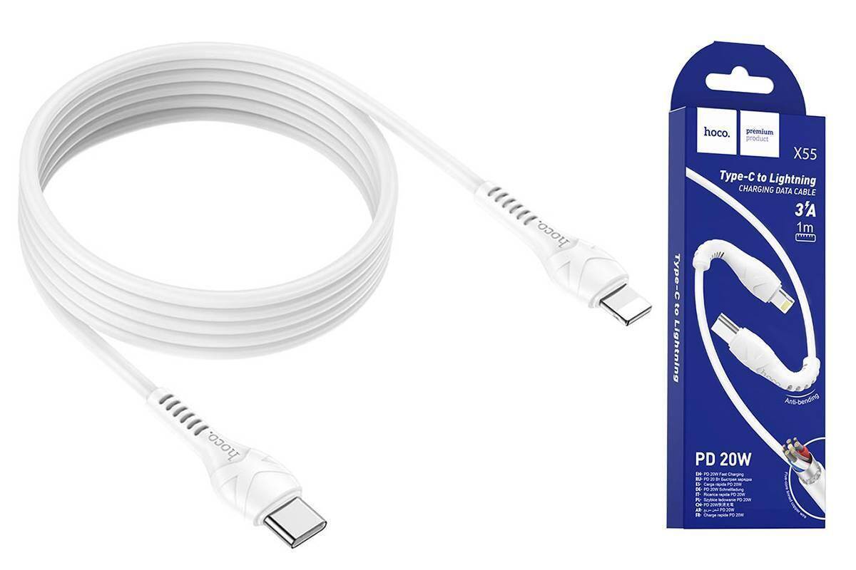 Кабель USB Type-C - Lightning HOCO X55, 3A PD20W (белый) 1м (с усилением сгиба)