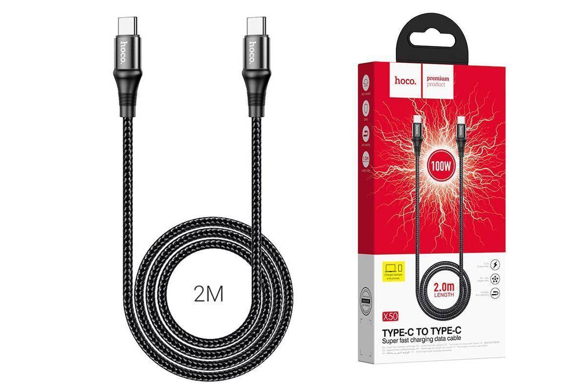 Кабель USB Type-C - USB Type-C HOCO X50, 5A/20V, PD100W (черный) 2м (в оплетке)