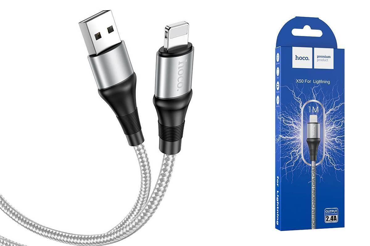 Кабель USB - Lightning HOCO X50, 2,4A (серый) 1м (в оплетке)