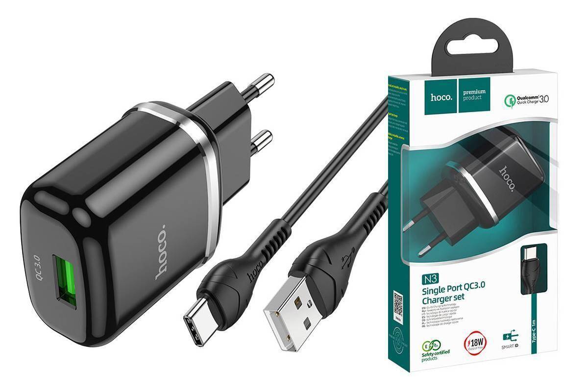 Сетевое зарядное устройство USB + кабель Type-C HOCO N3 Special stngle port QC 3.0 (черный)