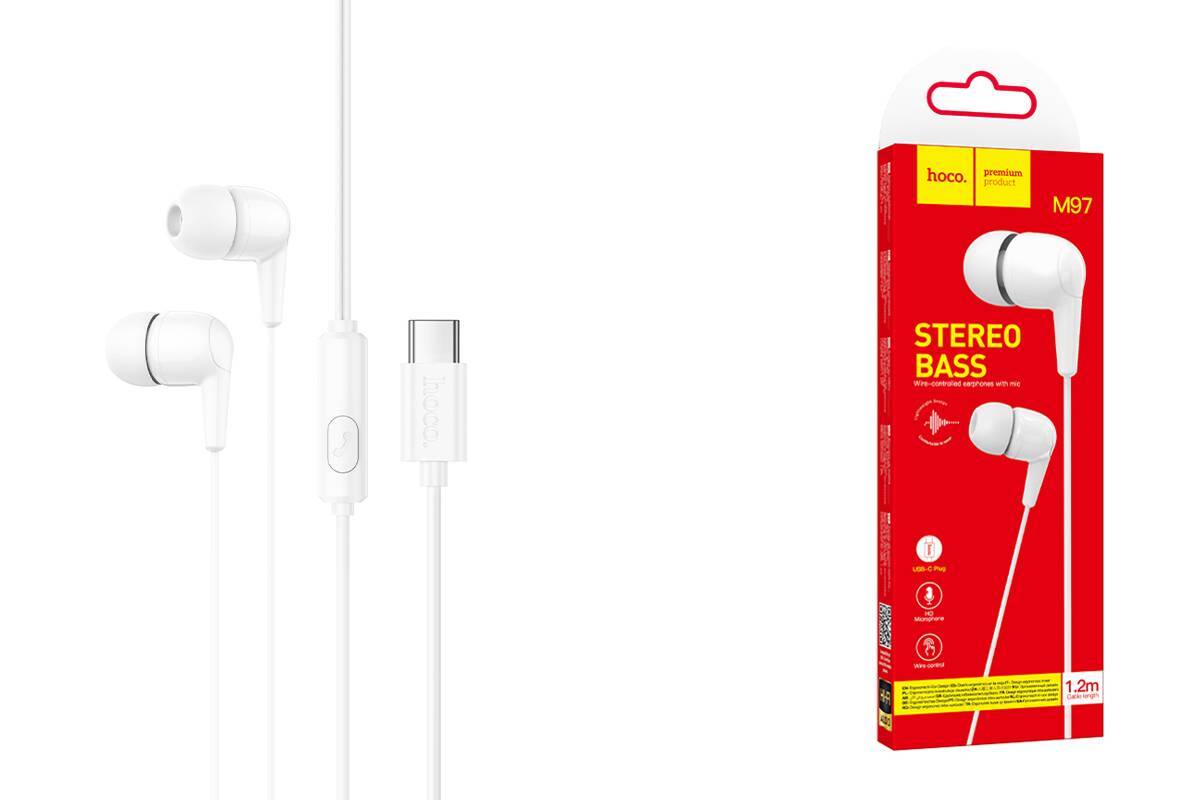 Наушники вакуумные проводные HOCO M97 Enjoy universal digital earphones with microphone штекер Type-C (белый)